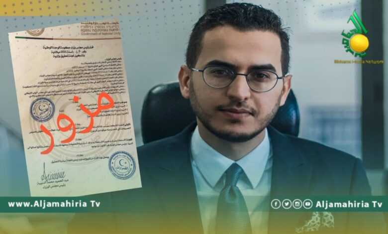 أكد المتحدث باسم حكومة الوحدة الوطنية محمد حموده، أن القرار المتداول رقم 67 والذي يفضي بتشكيل لجنة تحقيق وزارية مع وزيرة الخارجية بالحكومة نجلاء المنقوش قرار مزيف ومزور.