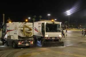 ونشرت البلدية، على صفحتها صورا لعمليات التنظيف، ليلة أمس، بمشاركة مركز الشرطة وشركة الخدمات العامة.