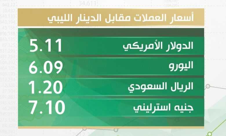 أسعار صرف الدولار والعملات الأجنبية مقابل الدينار الليبي اليوم الخميس