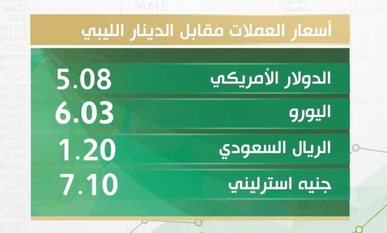 أسعار صرف الدولار والعملات الأجنبية مقابل الدينار الليبي اليوم الاثنين