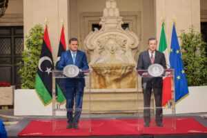 وقال دراغي في تصريح للصحفيين في ختام إجتماع مع الدبيبة بمقر رئاسة الوزراء في روما الاثنين، “ناقشنا قضايا الهجرة والمسائل الإنسانية التي تمثل أولوية لليبيا وإيطاليا”، من بينها “السيطرة على الحدود الليبية، بما في ذلك الحدود الجنوبية، ومكافحة الاتجار بالبشر، ومساعدة اللاجئين، والممرات الإنسانية، وتنمية المجتمعات الريفية”.