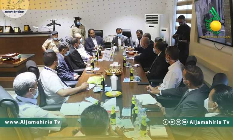 حيث عُقد اجتماع للوفد والفريق المكلف مع إدارة المطار، تلاه القيام بجولة لتفقد الاجراءات والتدابير الأمنية المتبعة بالمطار، تمهيداً لاستئناف تسيير رحلات جوية مباشرة بين المطارات الليبية ومطار القاهرة الدولي.