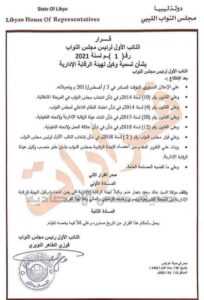 وأشار رئيس مجلس النواب، إلى أن بموجب هذا القرار يلغى تكليف خالد ضو كوكيل هيئة الرقابة الإدارية الذي تم تكليفه من قبل مجلس النواب .‏