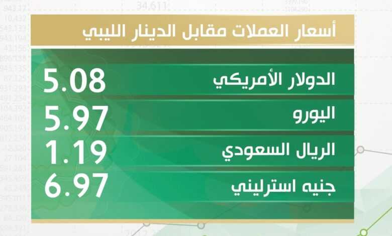 أسعار صرف الدولار والعملات الأجنبية مقابل الدينار الليبي اليوم الثلاثاء