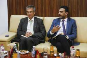 استقبل وزير الشباب بحكومة الوحدة المؤقتة فتح الله الزني، الأربعاء، بديوان الوزارة، المدير الاقليمي للمؤسسة الألمانية والتعاون الدولي مانفريد هور، ومدير مشروع دعم اللامركزية في ليبيا راني داوود.