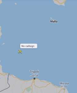 رصد موقع إيتاميل رادار العسكري، قيام القوات المسلحة المالطية بيتشكرافت بيتش ب 200 (AS1731) بدوريات قبالة غرب ليبيا.