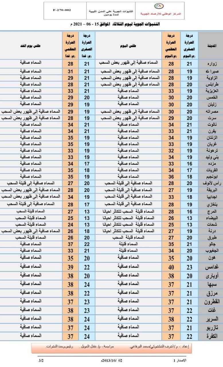 التنبؤات الجوية الصادرة اليوم الثلاثاء