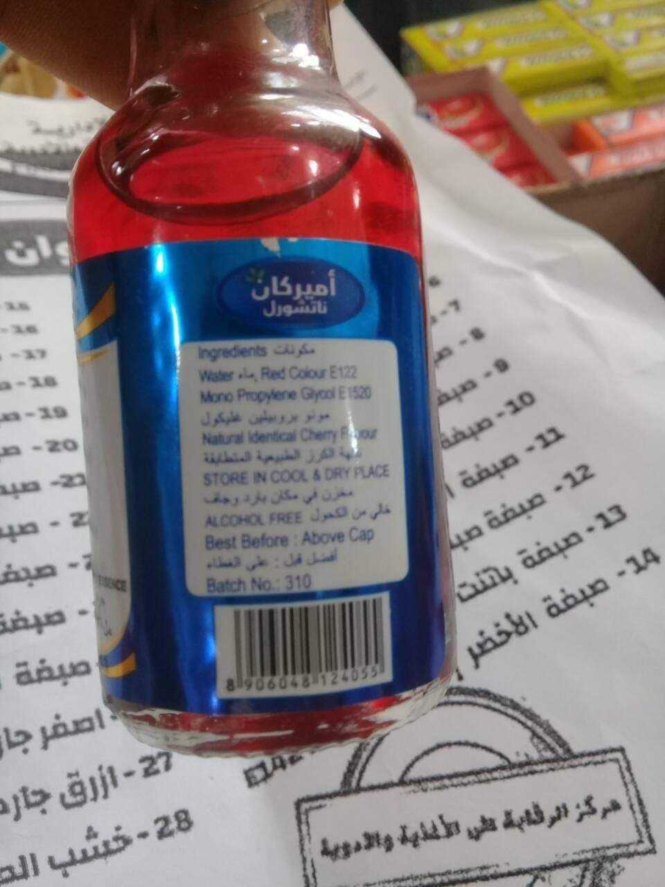 وجود ملونات غذائية تحتوي علي ألوان محظورة E122 .