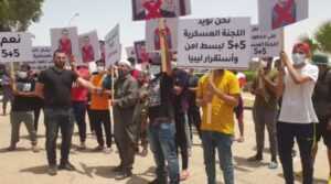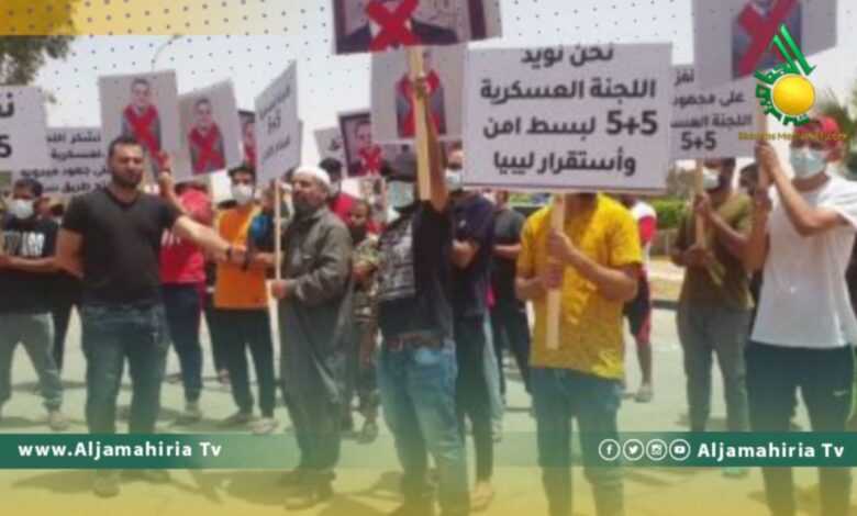 وأكد المحتجون الذين خرجوا في شوارع مدينة سرت، باتجاه مقر إقامة لجنة “5+5” ومقر البعثة الأممية في فندق المهاري، تأييدهم للجنة ومعارضتهم لتدخل الدبيبة في اختصاصاتها.