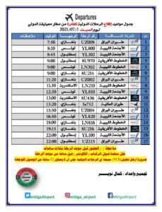 • مواعيد رحلات الطيران من وإلى مطار معيتيقة