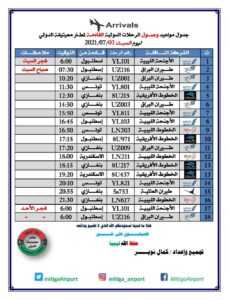 أعلنت إدارة مطاري معيتيقة بالعاصمة طرابلس، وبنينا بمدينة بنغازي، عن مواعيد رحلات الطيران من وإلى المطارين المقررة، اليوم السبت، 3 يوليو 2021.