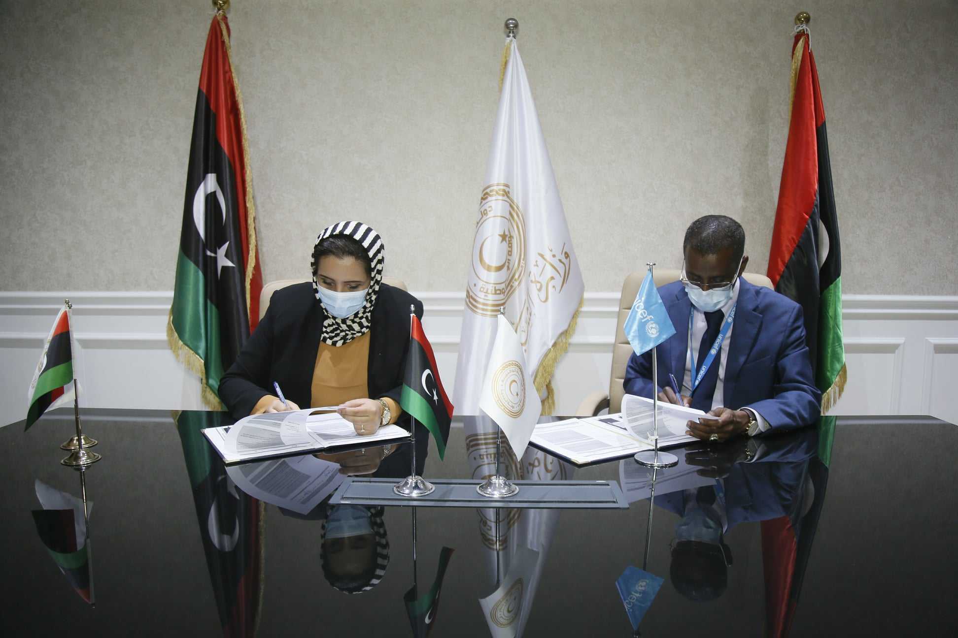 وقعت اليوم الاثنين، بديوان وزارة الشباب اتفاقية تعاون مشترك مع منظمة الأمم المتحدة للطفولة “اليونيسف” UNICEF، وقعت الاتفاقية من طرف الوزارة المهندسة “رندة غريب” وكيل الوزارة لشؤون التخطيط والتطوير، بينما وقع من طرف المنظمة السيد “عبدالقادر موسى” الممثل الخاص للمنظمة بليبيا.