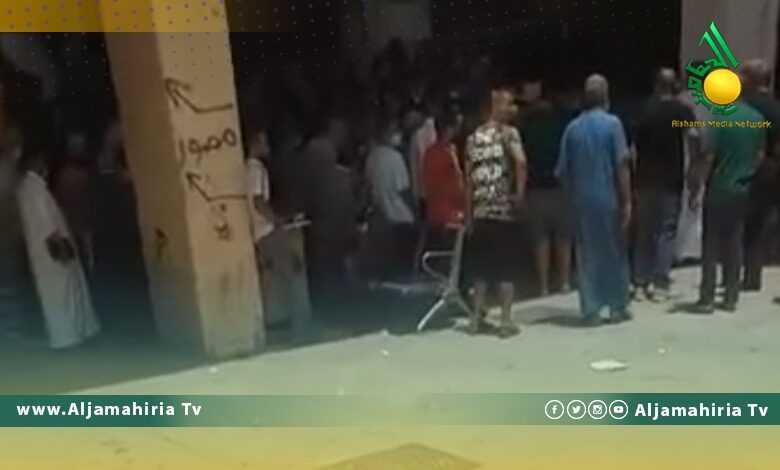 تناقل رواد مواقع التواصل الاجتماعي مقطع فيديو يظهر ازدحام المواطنين أمام مصرف الصحاري فرع أبو سليم.