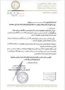 أصدر رئيس الحكومة عبد الحميد الدبيبة تعميما بمنع المعايدات بعد الرجوع للعمل من عطلة عيد الأضحى، مشددًا على ضرورة الالتزام والتقيد بالإجراءات الاحترازية المتخذة بالخصوص.