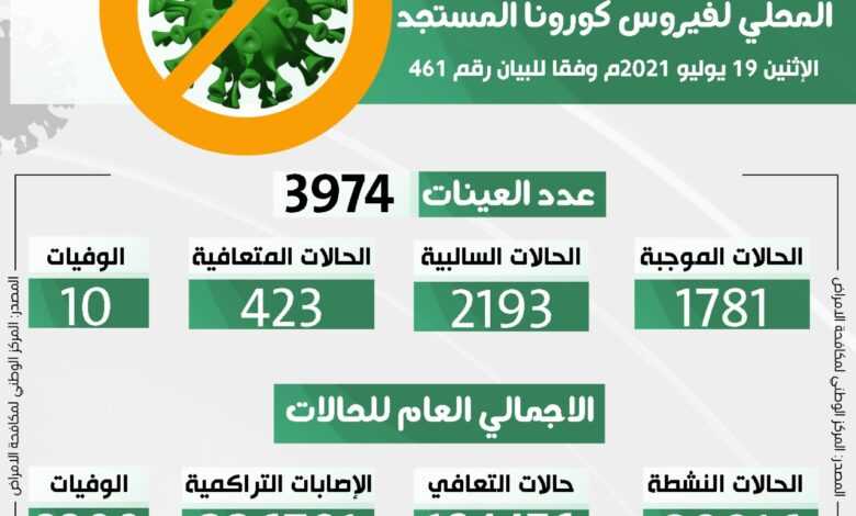التحديث اليومي للوضع الوبائي لفيروس كورونا ليوم الاثنين 19 يوليو 2021