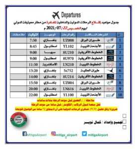 • مواعيد رحلات الطيران من وإلى مطار معيتيقة