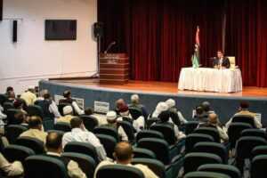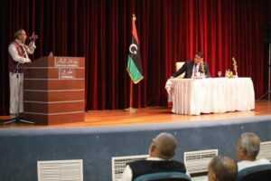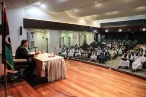 واستمع المنفي، إلى المشاكل والعراقيل التي تواجه المسؤولين بمنطقة البطنان، كمشاكل المياه والكهرباء، وتحديات مجابهة فايروس كورونا، ووعد بتذليلها بالتنسيق مع حكومة الوحدة الوطنية المؤقتة.