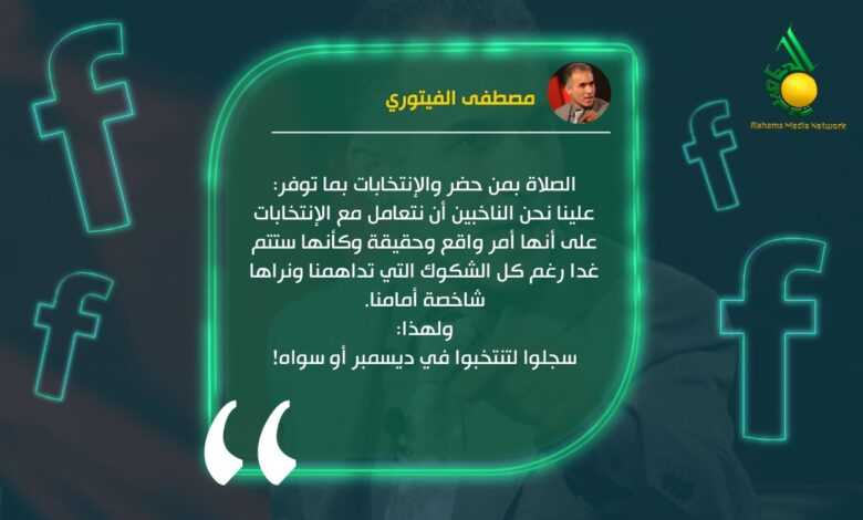 وأضاف “وعليه: علينا نحن الناخبين أن نتعامل مع الإنتخابات على أنها أمر واقع وحقيقة وكأنها ستتم غدا رغم كل الشكوك التي تداهمنا ونراها شاخصة أمامنا.. ولهذا: سجلوا لتنتخبوا في ديسمبر أو سواه!”.