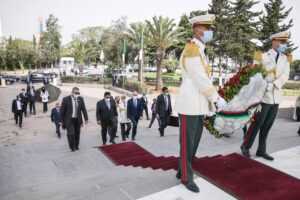 ويذكر أن رئيس المجلس الرئاسي، محمد المنفي، وصل اليوم إلى الجزائر، في إطار زيارة رسمية تستمر يومين. حيث كان في استقباله، الوزير الأول في الجزائر، السيد أيمن بن عبد الرحمن، ووزير الداخلية السيد كمال بلجود، بمطار هواري بومدين الدولي.