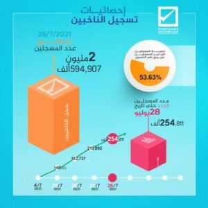 العليا للانتخابات: إجمالي الناخبين المسجلين وصل إلى قرابة 2.6 مليون ناخب والجدد 254 ألفًا
