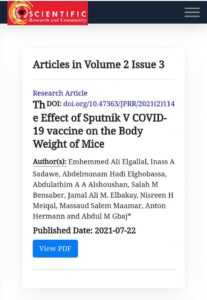 وذكر المركز أن الدراسة أجريت بكوادر ليبية، على فئران تجارب وتم اختبار تحليل السمية بعد حقنها بلقاح covid 19 نوع سبوتنيك Sputnik v ووضعها تحت القراءة والدراسة.