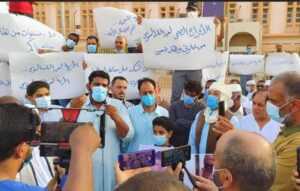 بالصور// وقفة احتجاجية للمطالبة بالإفراج عن اللواء عبد الله السنوسي و”المقارحة” يمهلون السلطات الانتقالية 72 ساعة