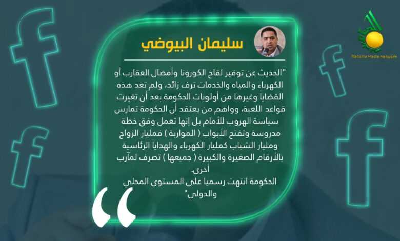 وواصل البيوضي في تدوينة له على موقع فيس بوك، طالعتها “الجماهيرية” استعراض فشل حكومة الدبيبة وأزماتها..