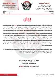 وأكدت المليشيا تأييدها لما جاء في بيان غرفة العمليات المشتركة بالمنطقة الغربية التابع لأسامة جويلي بشأن رفض مخرجات 5+5 وعدم المساس بـ “الاتفاقية التركية”.