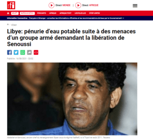 أكدت إذاعة فرنسا الدولية المهتمة بالشؤون المغاربية، أن أجزاء كبيرة من ليبيا حُرمت من مياه الشرب منذ يوم السبت 14 أغسطس.