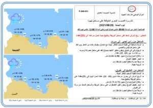 توقع مركز الأرصاد الجوية، اعتدال درجات الحرارة على مناطق الشمال في ليبيا، مع ارتفاع الرطوبة.