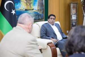 وبحسب المكتب الإعلامي لرئيس المجلس الرئاسي، ناقش اللقاء الوضع الأمني في البلاد، والتنسيق مع دول الجوار في الملفات الأمنية المشتركة.