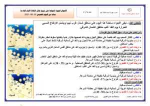 كما توقع أن تكون درجات الحرارة معتدلة هذا اليوم على الساحل الشرقي حيث تتراوح ما بين (30 – 33) مْ وتسجل إرتفاع نسبي يوم الغد، بينما تكون الحرارة على بقية المناطق ما بين (37 – 42) مْ.