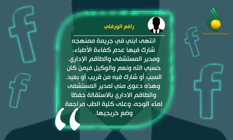 وقال الورفلي: لقد توفي ابني “صلاح رافع” ضحية الإهمال الطبي والفساد الاداري؟