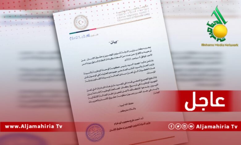 عاجل| وزير الدولة لشؤون المهجرين وحقوق الإنسان بحكومة الوحدة المؤقتة يرحب بالإفراج عن عدد من المعتقلين والقيادات بالنظام الجماهيري بعد سنوات من الاعتقال التعسفي الغير قانوني