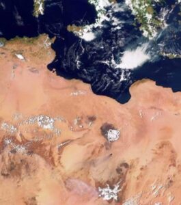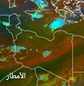 وأظهرت صورا بالأقمار الصناعية، عند الساعة 6:00 مساء بتوقيت ليبيا، تكوّن سحابة ضخمة قبالة الساحل الشرقي، وبعض السحب المتفرقة على الجنوب.