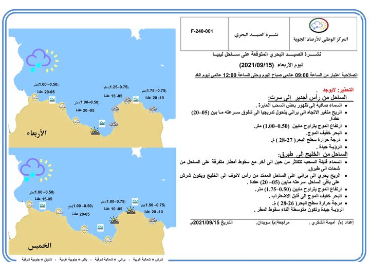 أما نشـرة الصيـد البحري المتوقعة على سـاحل ليبيا