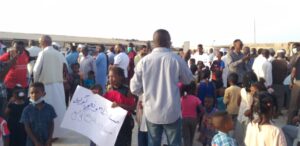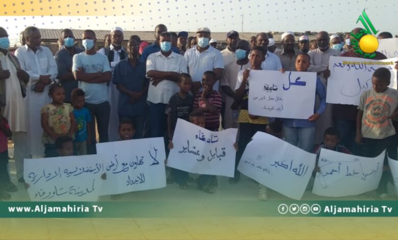 نظّم مهجرو مدينة تاورغاء بالمنطقة الشرقية، الإثنين، وقفة احتجاجية بمخيم بنغازي.
