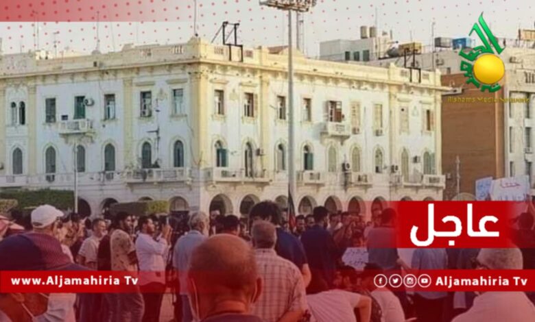 وقفة احتجاجية بالساحة الخضراء في طرابلس اعتراضا على قرار مجلس النواب بسحب الثقة من حكومة الدبيبة