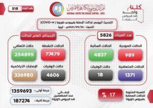 عاجل| 18 حالة وفاة و989 إصابة جديدة بفيروس كورونا.