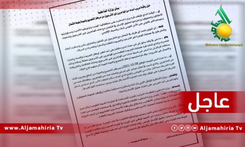 الرئيسية/عاجل/عاجل// الداخلية تنفي في بيان لها استخدام القوة المفرطة في عملية السيطرة على تدافع وهروب المئات من المهاجرين غير الشرعيين المحتجزين في غوط الشعال وتقول إنها تعاملت مع الموقف بمهنية عاجلمحلي عاجل// الداخلية تنفي في بيان لها استخدام القوة المفرطة في عملية السيطرة على تدافع وهروب المئات من المهاجرين غير الشرعيين المحتجزين في غوط الشعال وتقول إنها تعاملت مع الموقف بمهنية 9 أكتوبر، 2021 بيان الداخلية عاجل الوسومعاجل قناة الجماهيرية العظمى ليبيا وزارة الداخلية 9 أكتوبر، 2021 فيسبوك تويتر بينتيريست واتساب تيلقرام ڤايبر مشاركة عبر البريد طباعة