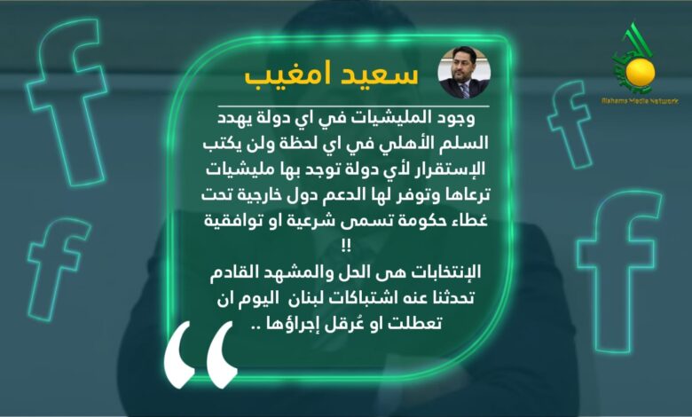 وأضاف “الانتخابات هي الحل والمشهد القادم تحدثنا عنه اشتباكات لبنان اليوم ان تعطلت او عُرقل إجراؤها” ..