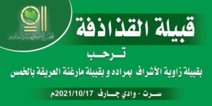 بدورها رحبت قبيلة القذاذفة بوفدي قبيلتي زاوية الأشراف ومارغنة، وجرى استقبال جماعي لهما، مشيدة بالزيارة التي تدلل على عمق أواصر العلاقات بين أبناء الشعب الواحد.
