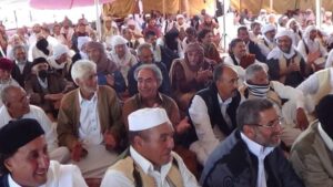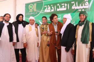 زار وفدا قبيلتي زاوية الأشراف بمرادة، ومارغنة بالخمس، اليوم الأحد، قبيلة القذاذفة، بوادي جارف في سرت، للتهنئة بالإفراج عن أبنائها اللواء الساعدي القذافى، واللواء ناجي احرير، بعد سنوات من الاعتقال التعسفي.