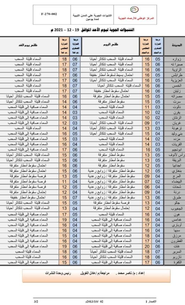 وجاء بيان الأحوال الجوية المتوقعة على ليبيا خلال الثلاثة الأيام القادمة:-