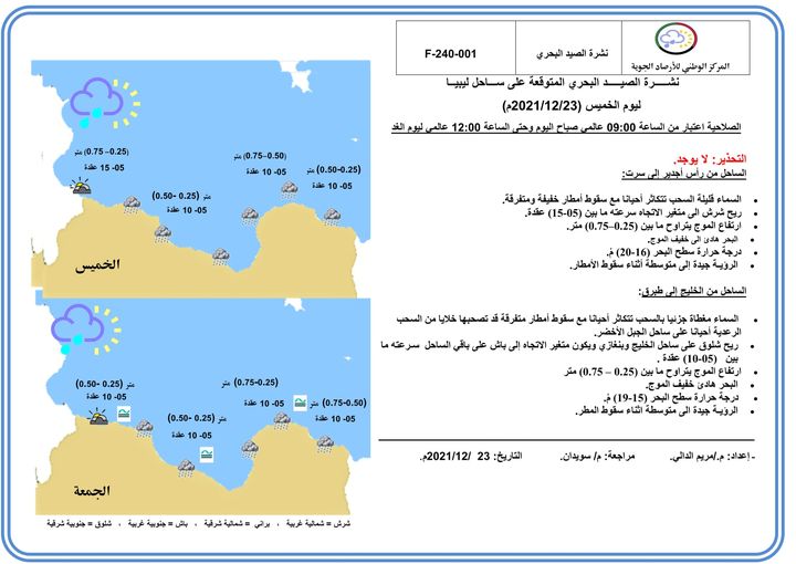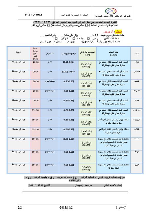 وجاء بيان الأحوال الجوية المتوقعة على ليبيا خلال الثلاثة الأيام القادمة كالتالي: