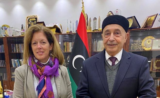 وقالت وليامز في تغريدة لها على موقع التواصل الاجتماعي تويتر، إنها التقت، عقيلة صالح في مدينة القبة، ورحبتُ بالتزامه بمواصلة