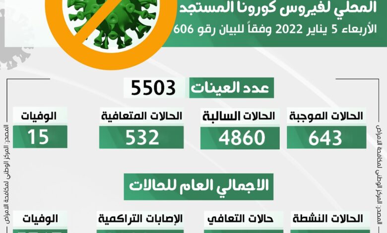 التحديث اليومي للوضع الوبائي المحلي لفيروس كورونا ليوم الأربعاء 5 يناير