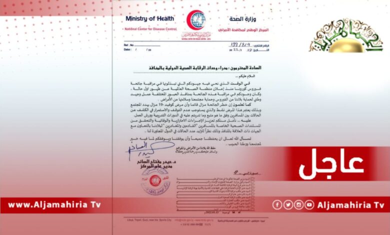 عاجل// مدير مركز مكافحة الأمراض يطالب وحدات الرقابة الصحية الدولية بالمنافذ تعزيز الإجراءات