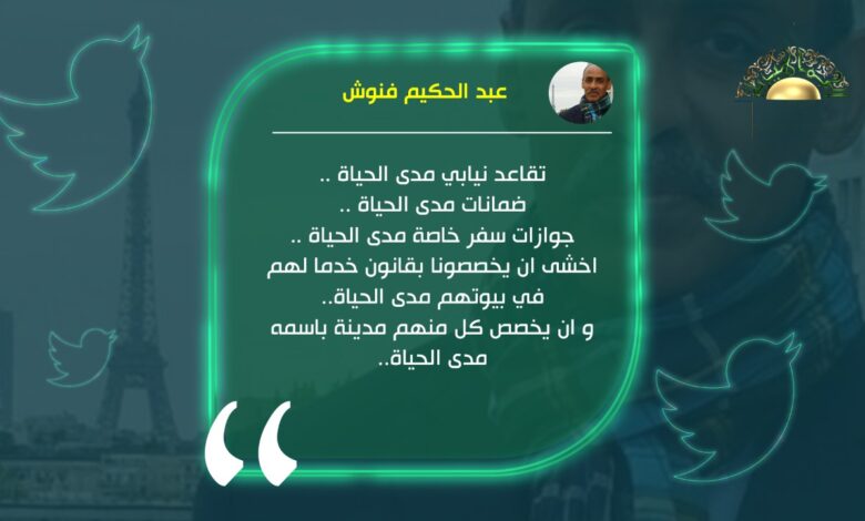 و ان يخصص كل منهم مدينة باسمه مدى الحياة ..— فنوش عبدالحكيم (@afannush) January 18, 2022