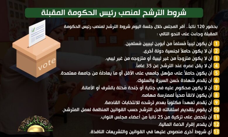 شروط مجلس النواب للترشح لمنصب رئيس الحكومة المقبلة